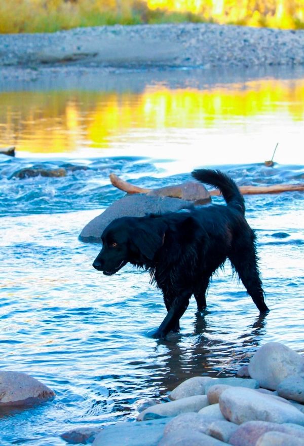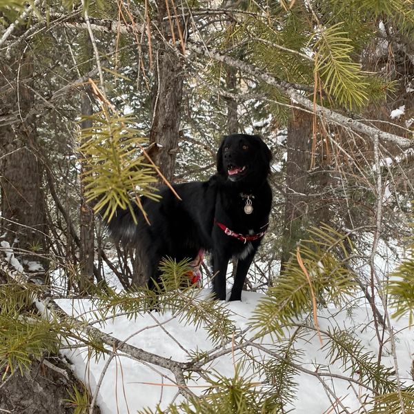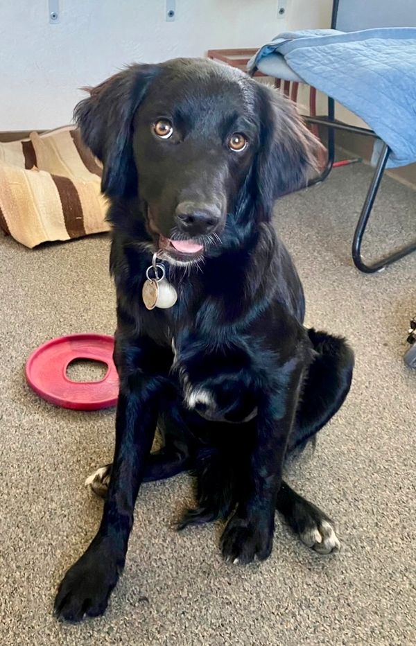 She is a high-energy flat coat retriever, 3 years old, and she definitely needs an active person or family and a home with room to run. She so soo soooooo sweet and amazing with kids, cats, and dogs, having had ample exposure to all three. She would be particularly great with a family with teenagers or preteens. She loves people, snow, water, and has the most beautiful coat.
