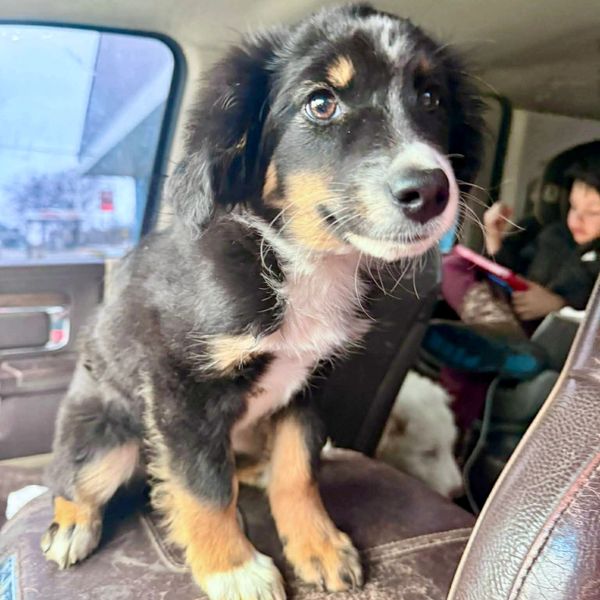 Bordon is a 3 month old male, guessed to be an Australian Shepherd/Bernese Mountain dog mix although he is small, only 10 pounds right now (little baby!). Growing daily but doesn’t seem like he will be a really big dog- hard to know! We do know he is ADORABLE, soft, cuddly and ready to find his new forever family. He is crate trained and pretty much potty trained but will need consistency. He is all things good! We need a foster or adopter to bring him to CO. Would you like to help him on his journey or make him part of your family? LuckyDayRescue.org to apply!