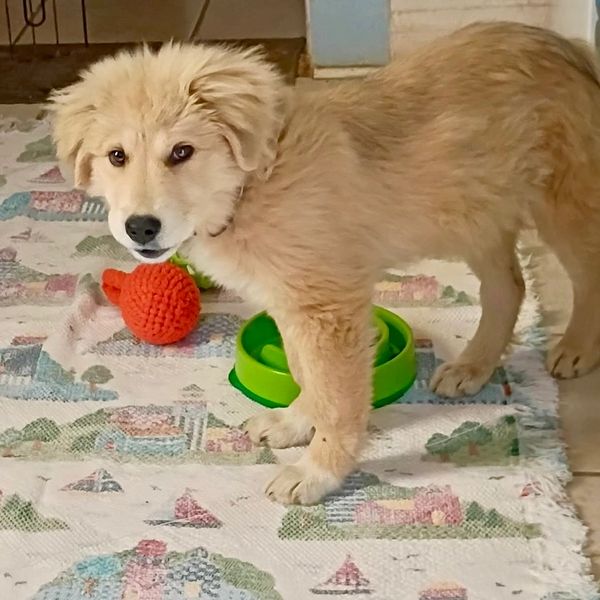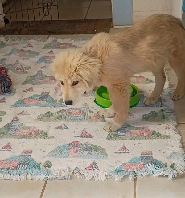 This darling pup is about 3 months old, currently 15 pounds and can't wait to meet her new person or whole family! She will be coming to CO January 7th if we can find a soft place for her to land. She was found dumped, guessed to be a Golden Retriever/Great Pyrenees mix. Sweet and soft and needs some love. She will likely be big but hard to know. Can you help Gloria find love? LuckyDayRescue.org to apply!