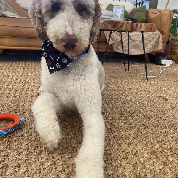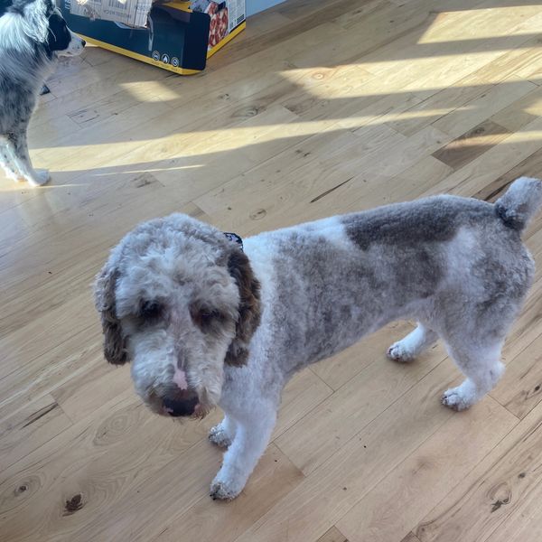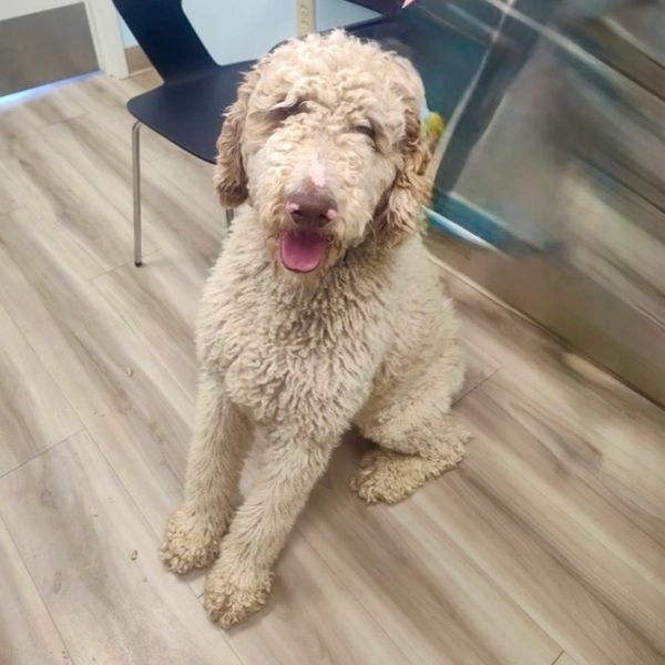 Oliver is a cream Standard Party Poodle mix, male, 65 pounds and just precious! He is 3 years old. Oliver is a sweet gentle soul.